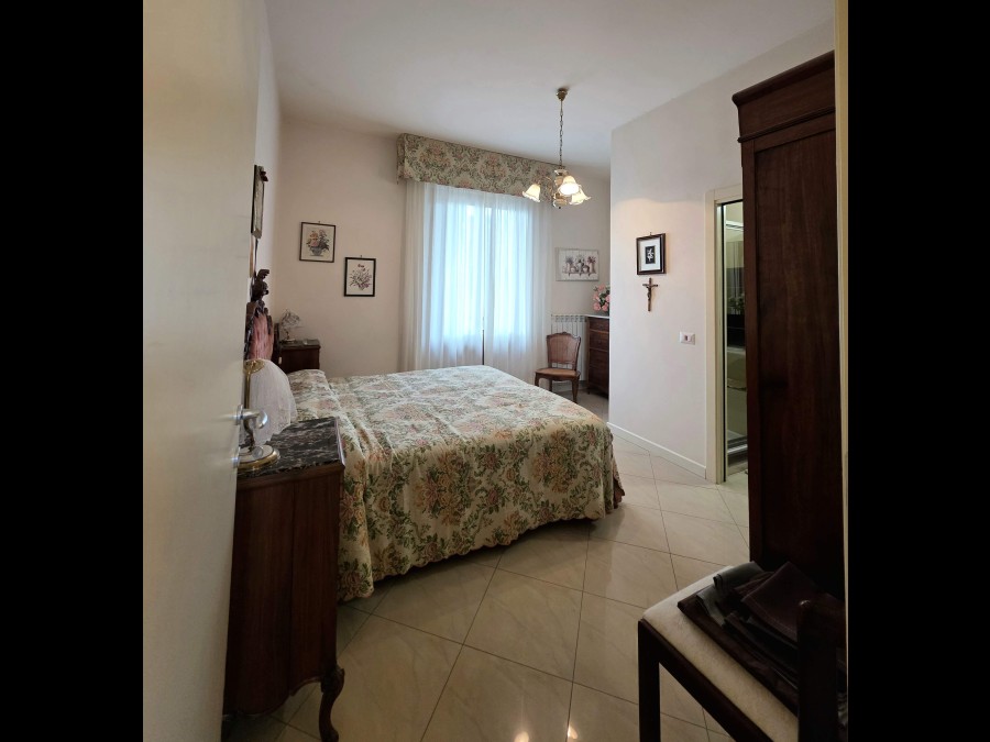 La zona notte ospita due camere matrimoniali con balcone, di cui una con bagno privato en suite. Un secondo bagno, finestrato e completo di vasca, completa la zona con eleganza e comfort.